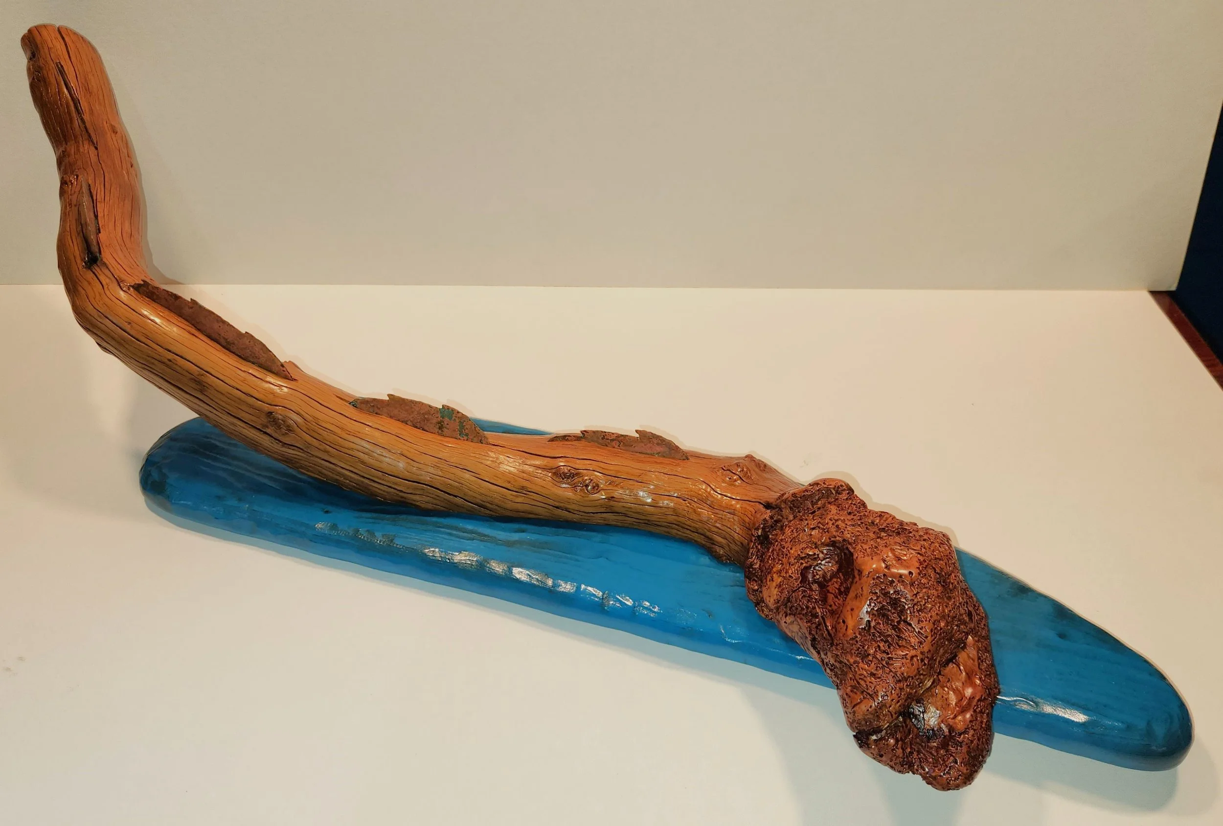 This photo shows a root in its found state. Dull, gray, and not very interesting. It needs much sanding, sculpting, and polishing to bring out its life: