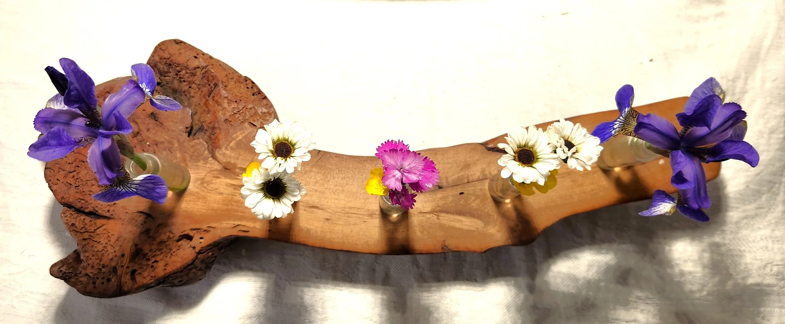 During their sixty years beautifying the gazebo, insect borers made tunnels in the roots – concentrating in the root burls. Long dead and gone, the borers’ efforts left a fascinating pattern of holes and tunnels.